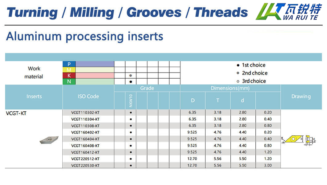 | VCGT110302-KT | NKW10 | D: 6.35 / T: 3.18 / d: 2.80 / d: 0.20 |
