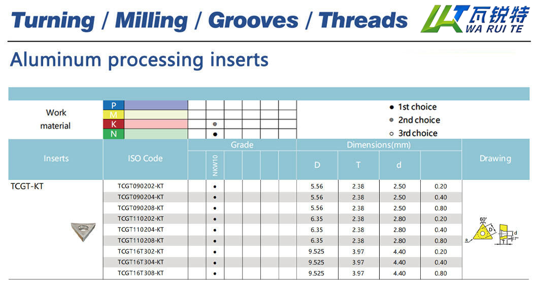 | TCGT16T308-KT | NKW10 | D: 9.525 / T: 3.97 / d: 4.40 / d: 0.80 |