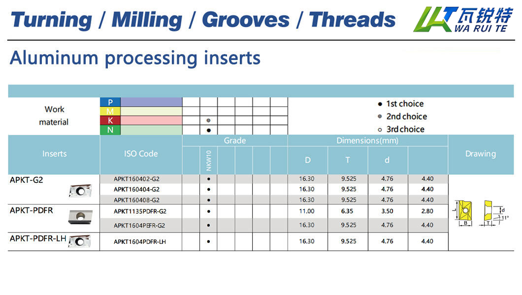 | APKT160408-G2 | NKW10 | L: 16.30 / B: 9.525 / T: 4.76 / d: 4.40 |