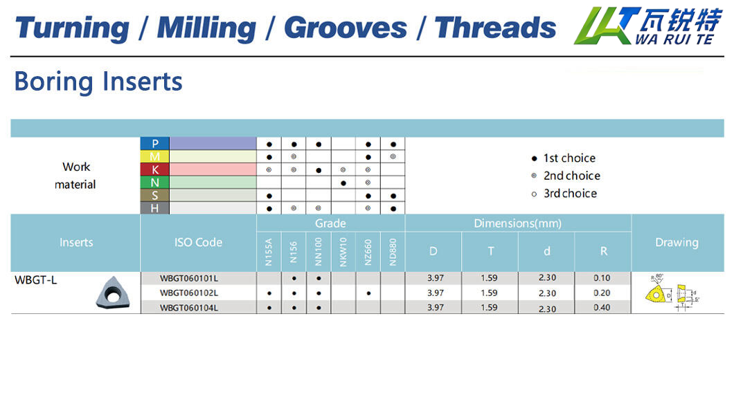 | WBGT060102L | N155A / N156 / NN100 / NZ660 | D: 3.97 / T: 1.59 / d: 2.30 / R: 0.20 |
