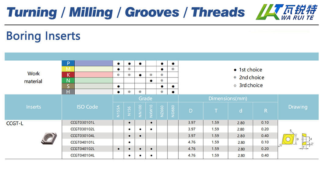 | CCGT040102L | N155A / N156 / NN100 / NKW10 | D: 4.76 / T: 1.59 / d: 2.80 / R: 0.20 |