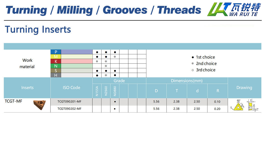 | TCGT090201-MF | ND880 | D: 5.56 / T: 2.38 / d: 2.50 / R: 0.10 |