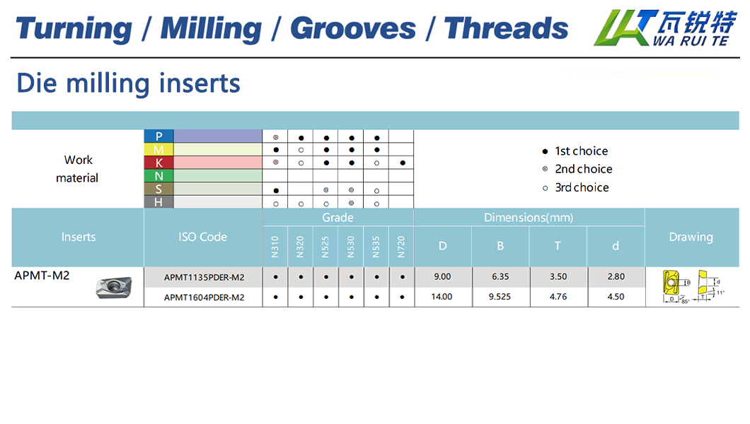 | APMT1604PDER-M2 | N310 / N320 / N525 / N530 / N535 / N720 | D: 14.00 / B: 9.525 / T: 4.76 / d: 4.40 |