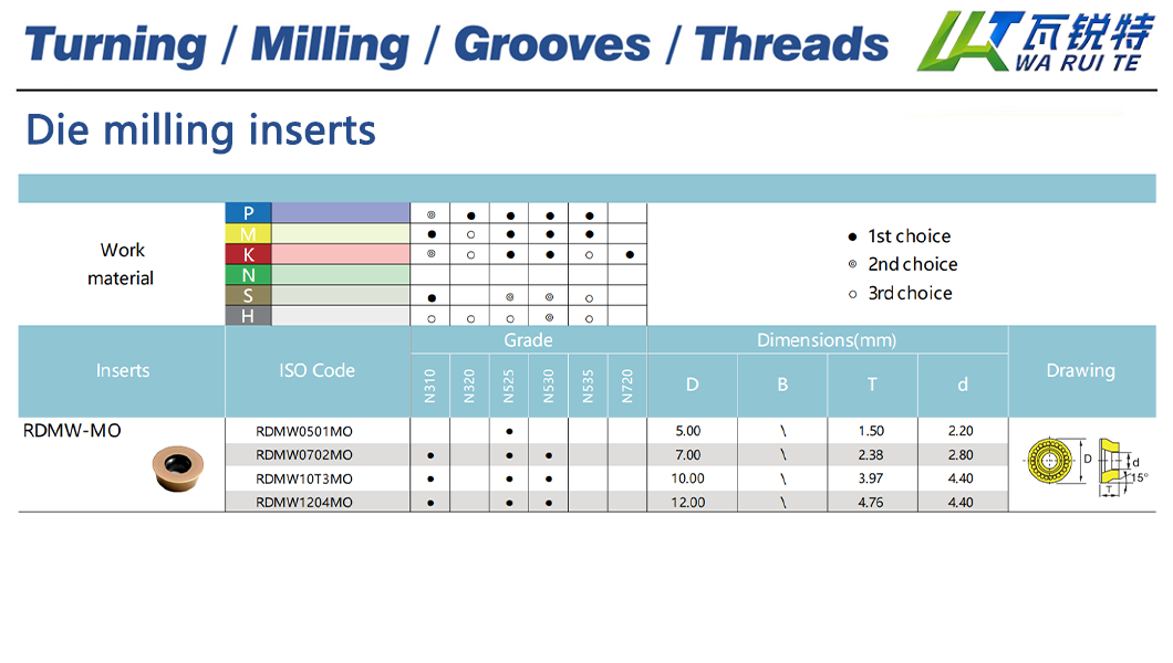 | Inserts ISO Code | Grade | Dimensions(mm) |