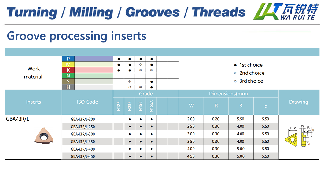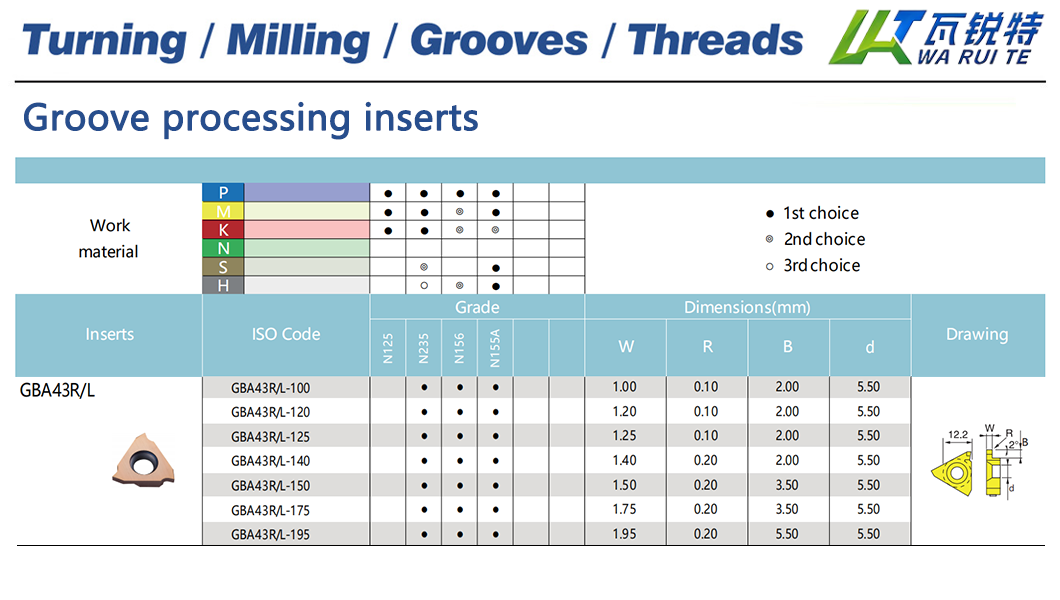 Multiple Configurations: Groove inserts are available in various geometries and sizes, making them adaptable to different groove shapes and dimensions.