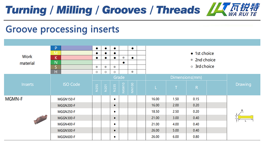 Multiple Configurations: Groove inserts are available in various geometries and sizes, making them adaptable to different groove shapes and dimensions.