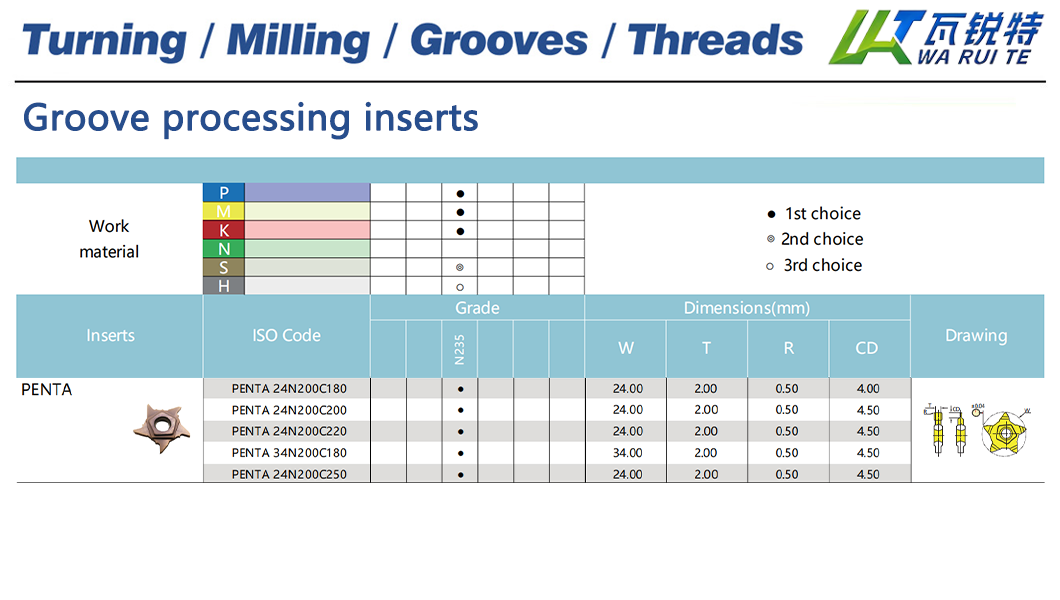 | PENTA 24N200C050 | N235 | W: 24.00 / T: 2.00 / R: 0.50 / CD: 2.00 |