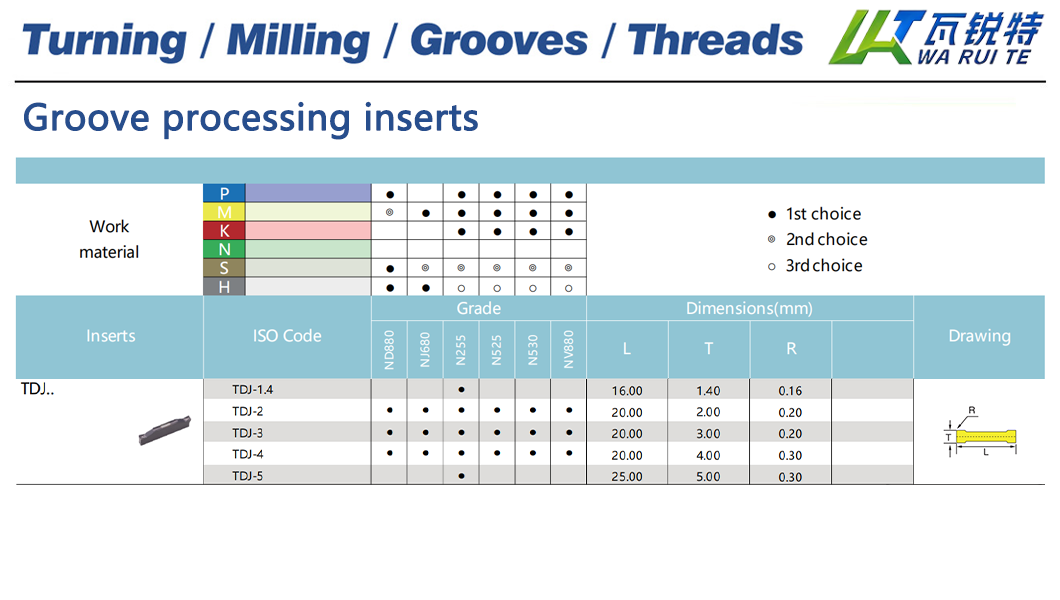 | TDJ-4 | ND880 / NJ680 / N255 / N525 / N530 / NV880 | L: 20.00 / T: 4.00 / R: 0.30 |