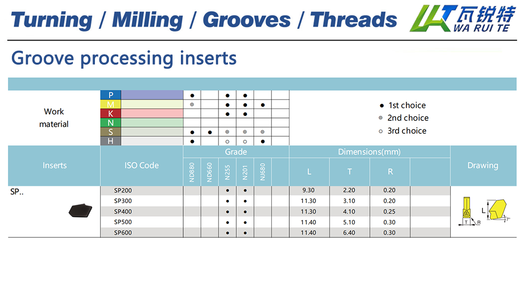 Multiple Configurations: Groove inserts are available in various geometries and sizes, making them adaptable to different groove shapes and dimensions.