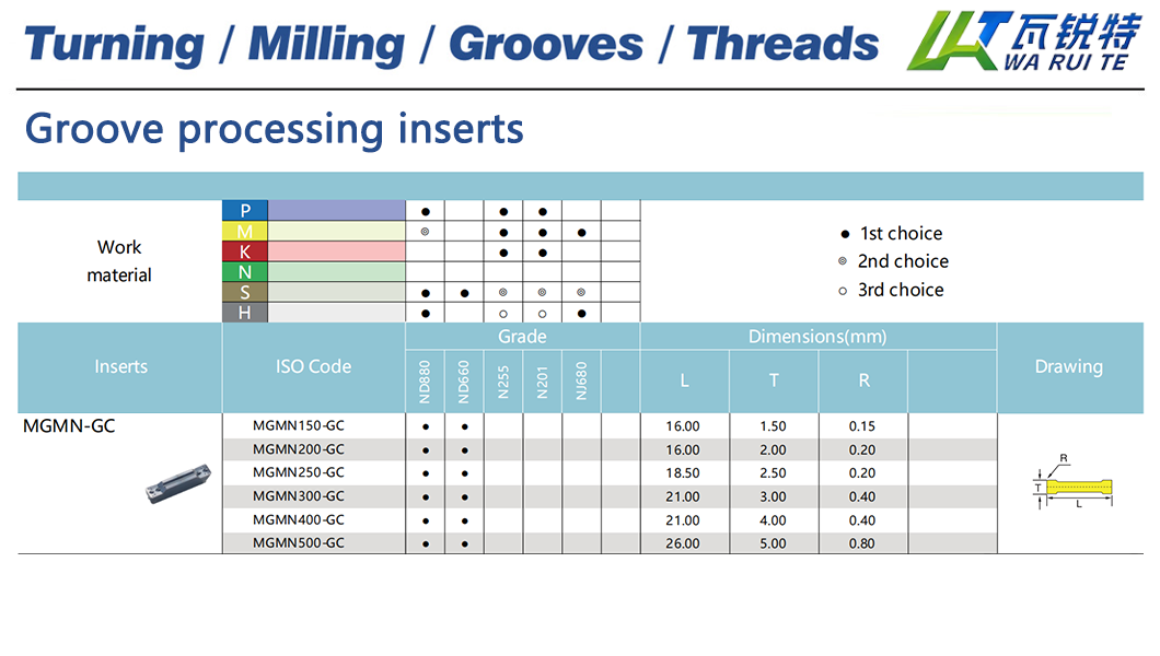 Multiple Configurations: Groove inserts are available in various geometries and sizes, making them adaptable to different groove shapes and dimensions.