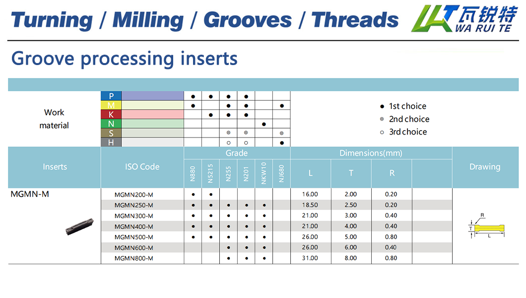| MGMN300-M | N880 / N5215 / N255 / N201 / NKW10 | L: 21.00 / T: 3.00 / R: 0.40 |