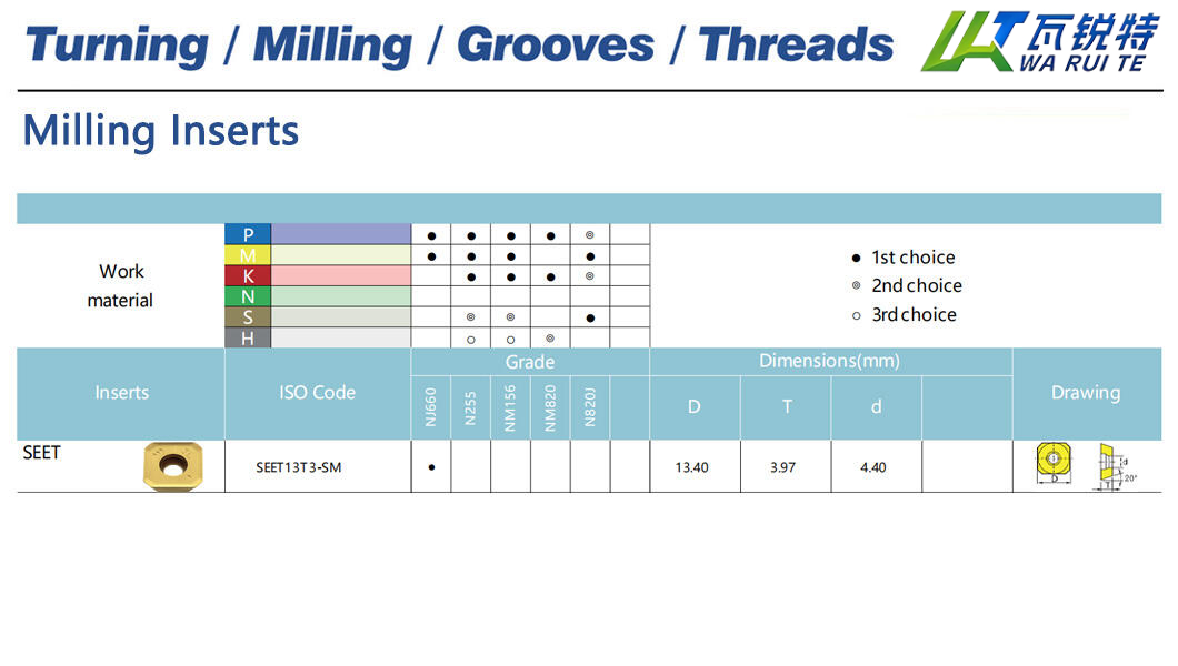 | Inserts ISO Code | Grade | Dimensions(mm) |