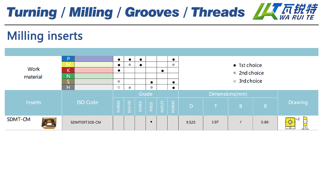 | SDMT09T308-CM | N820 | D: 9.525 / T: 3.97 / R: 0.80 |
