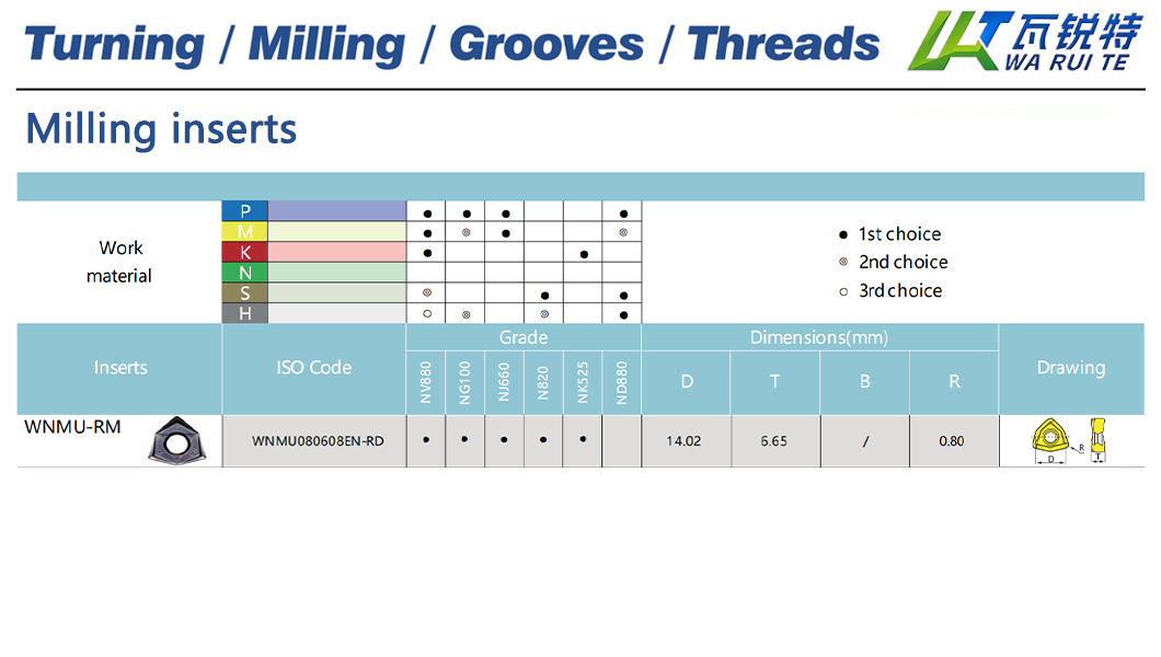 | Inserts ISO Code | Grade | Dimensions(mm) |