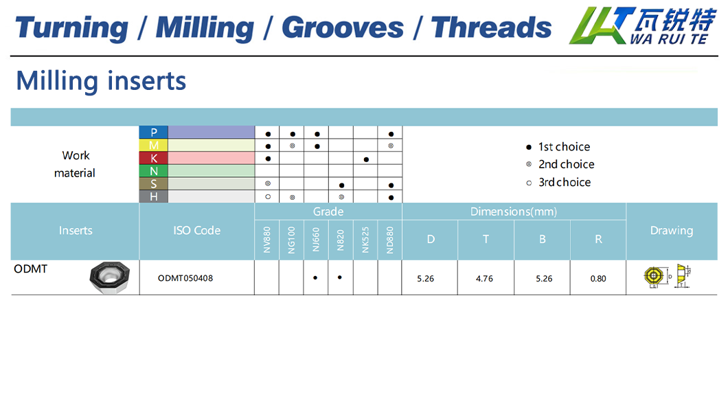 | Inserts ISO Code | Grade | Dimensions(mm) |