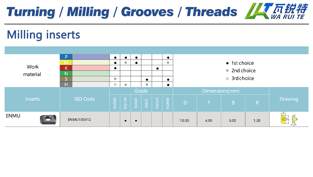 | Inserts ISO Code | Grade | Dimensions(mm) |