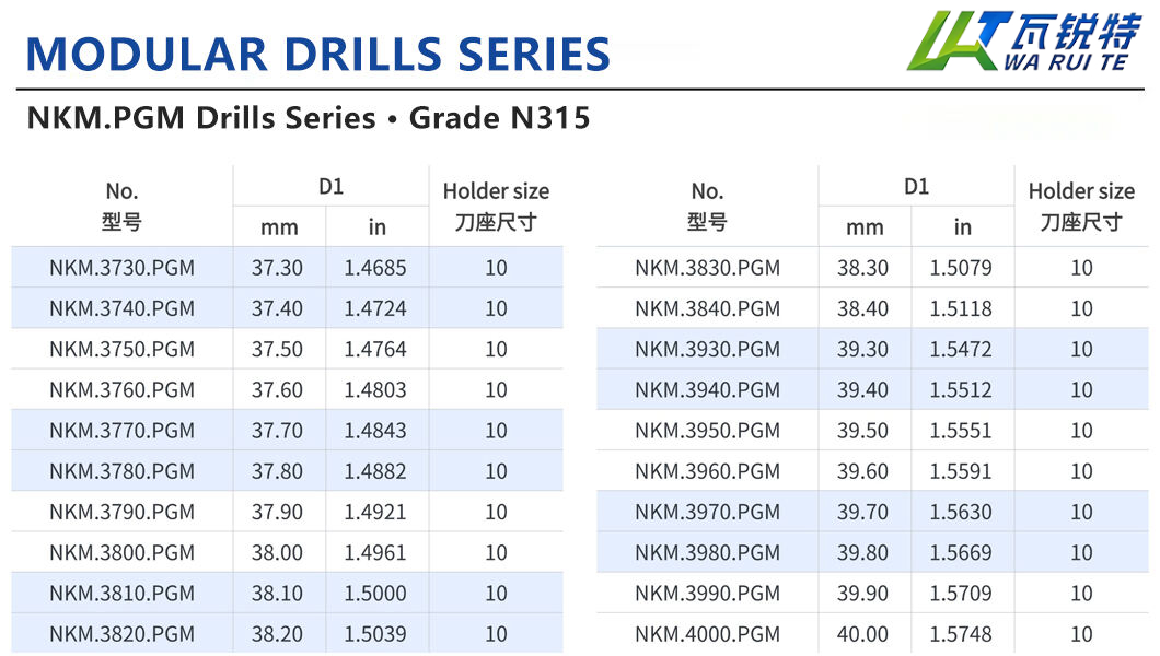 Standard configurations support drilling depths of 10 times the hole diameter (D), covering a hole diameter range of 12.5–40 mm (0.4921–1.5748 inches); multiple tool levels are also available to precisely adapt to the drilling needs of various materials.