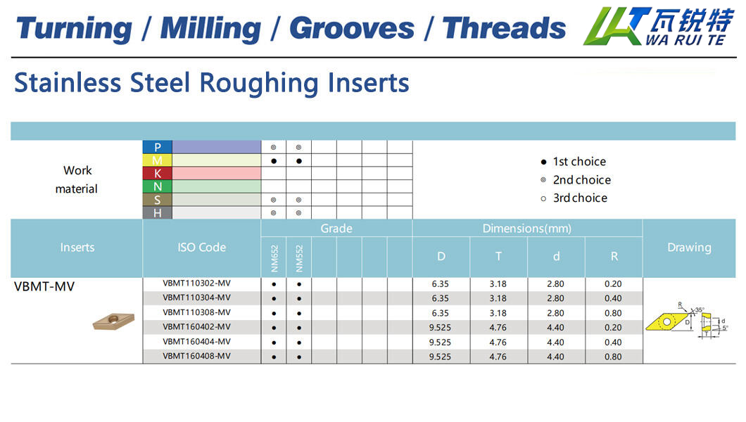 | VBMT110302-MV | NM652 / NM552 | D: 6.35 / T: 3.18 / d: 2.80 / R: 0.20 |