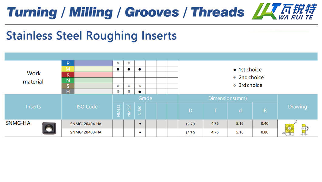 | SNMG120408-HA | NJ680 | D: 12.70 / T: 4.76 / d: 5.16 / R: 0.80 |