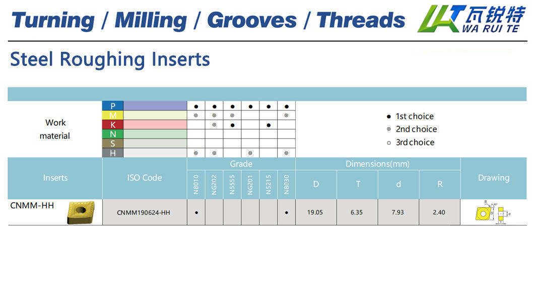 | CNMM190624-HH | N8010 / N8030 | D: 19.05 / T: 6.35 / d: 7.93 / R: 2.40 |