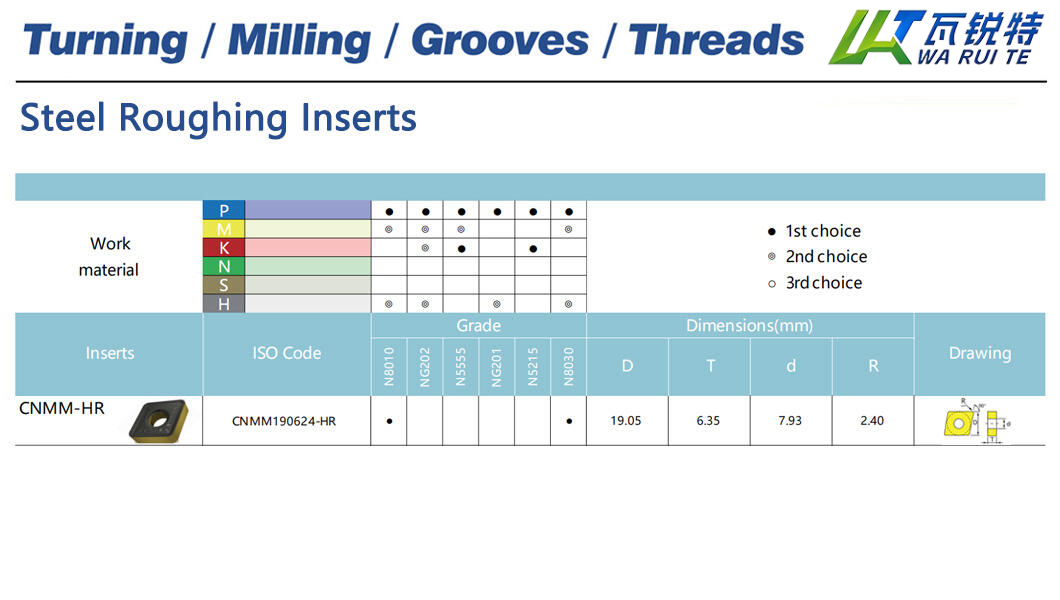 | CNMM190624-HR | N8010 / N8030 | D: 19.05 / T: 6.35 / d: 7.93 / R: 2.40 |