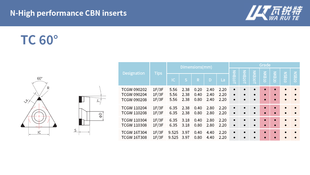 | N-High performance CBN inserts | N-Economical CBN inserts | N-High performance PCD inserts | N-Economical PCD inserts |