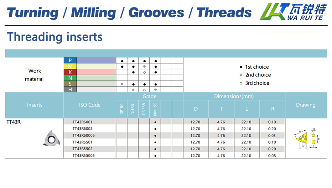 | Inserts ISO Code | Grade | Dimensions(mm) |