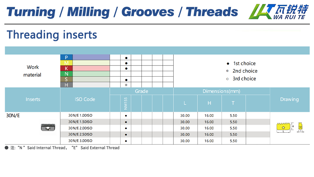 | Inserts ISO Code | Grade | Dimensions(mm) |