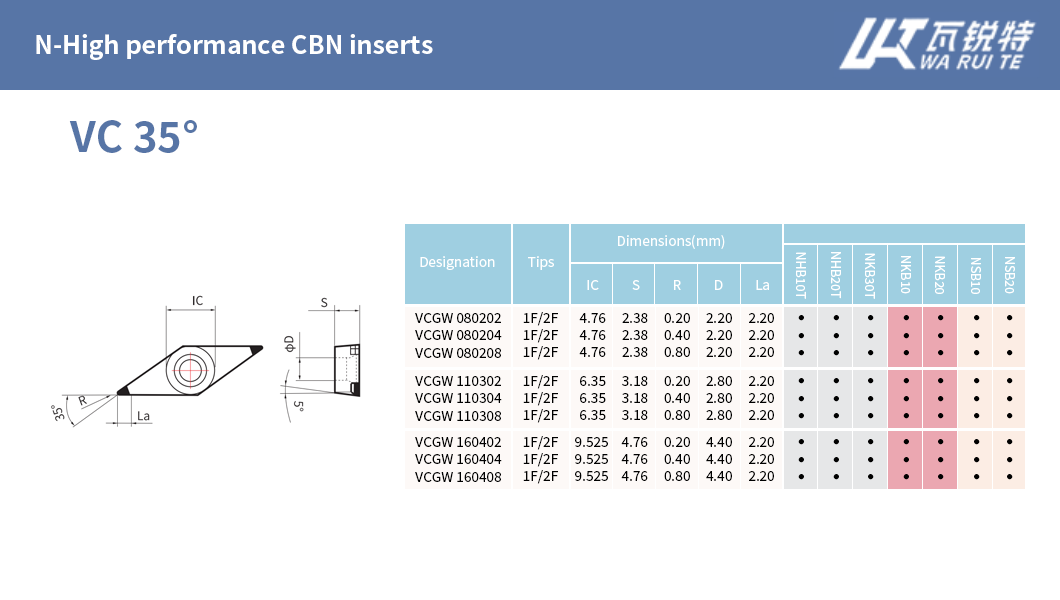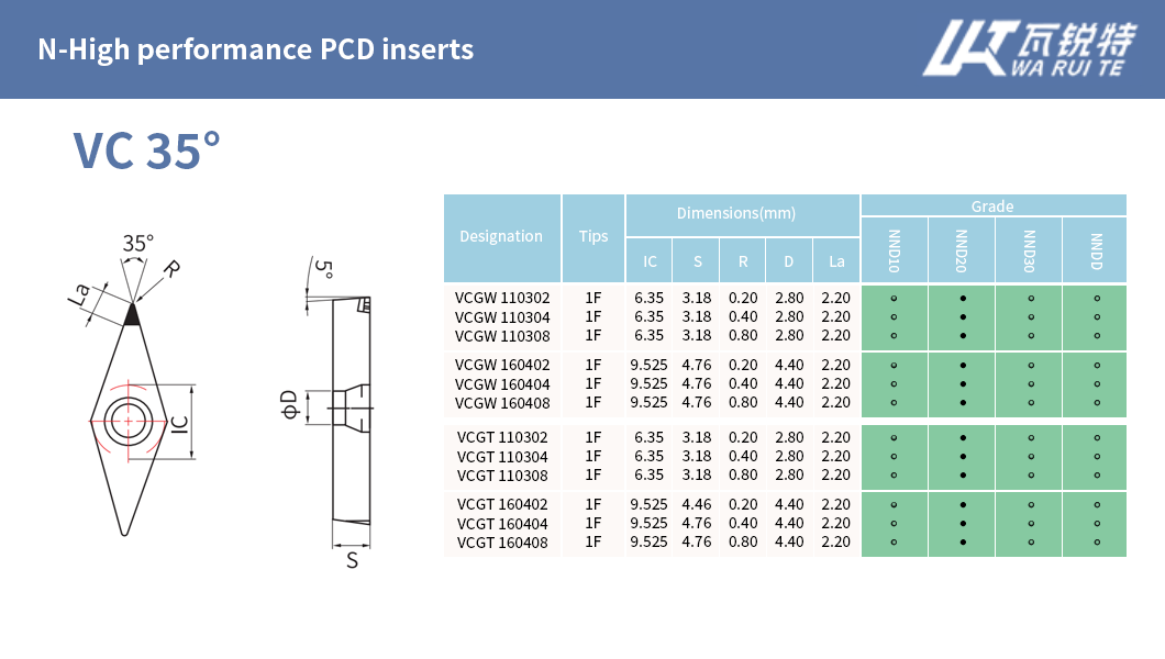 | N-High performance CBN inserts | N-Economical CBN inserts | N-High performance PCD inserts | N-Economical PCD inserts |