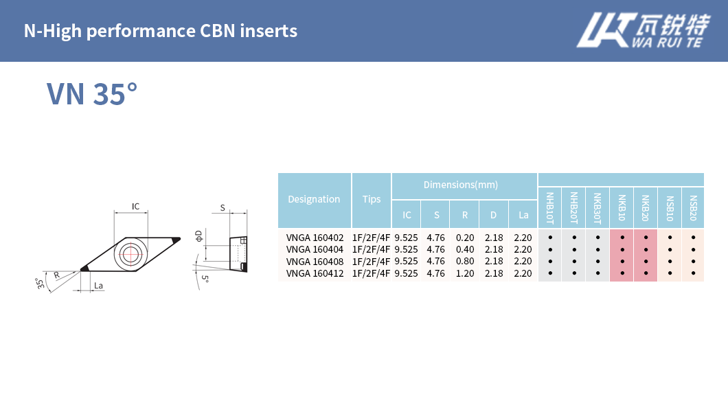 | N-High performance CBN inserts | N-Economical CBN inserts |