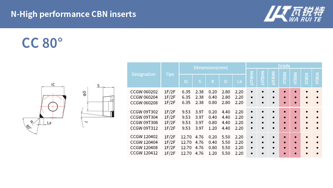 | N-High performance CBN inserts | N-Economical CBN inserts | N-High performance PCD inserts | N-Economical PCD inserts |