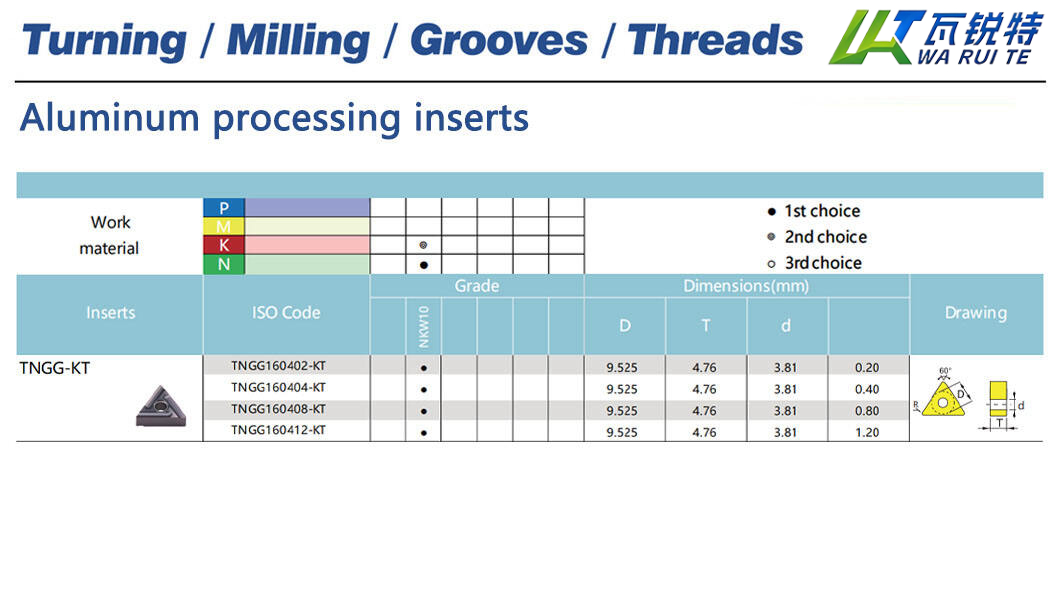 | TNGG160408-KT | NKW10 | D: 9.525 / T: 4.76 / d: 3.81 / d: 0.80 |