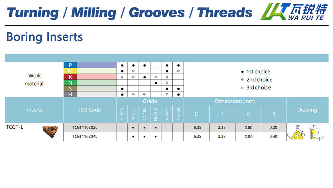 | TCGT110204L | N156 / NN100 / NKW10 | D: 6.35 / T: 2.38 / d: 2.80 / R: 0.40 |