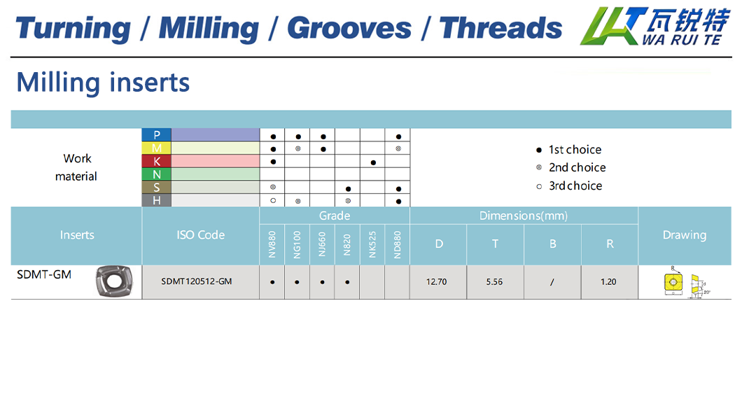 | SDMT120512-GM | NV880 / NG100 / NJ660 / N820 | D: 12.70 / T: 5.56 / R: 1.20 |
