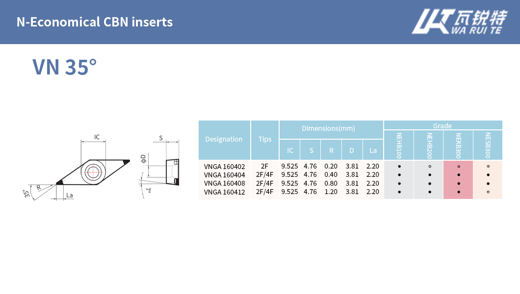 | N-High performance CBN inserts | N-Economical CBN inserts |